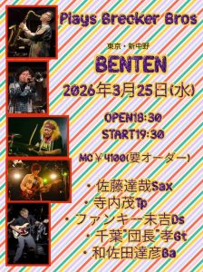 ファンキー末吉・プレイズ・ブレッカー・ブラザーズ 2026年1月20日(火)東京・高田馬場「音楽室DX」Plays Brecker Bros. |