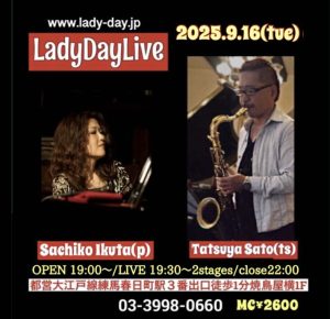 佐藤達哉(ts, ss)生田さち子(p)Duo 19:30 start / 19:00 open